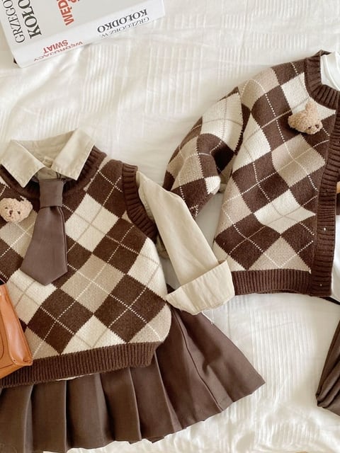 おしゃれで可愛らしいブラウンチェックのカーディガンとベストが新登場温かみのある